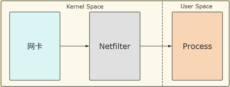 流量过滤 指的是先让流量从网卡进来,然后在 linux 内核里进行过滤处理,最后进入网络应用。这样网络应用前面就有一道防火墙,防火墙就位于 linux 内核的实现中。