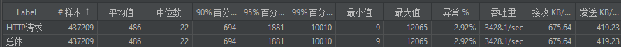 • 1000 线程的吞吐量:3461/sec,平均响应时间:241 ms,中位数:21ms,错误率:0.79%,P99:7099 ms